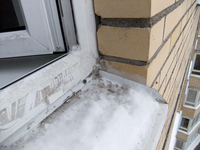 Действия: снять отливы, загнутые вверх части отогнуть как было, в стене болгаркой с алмазным диском прорезать соотв пазы, смонтировать обратно (под отлив - чего там Алина сказала), тщательно промазать силиконом (выбрать: для наружных работ, по бетону/кирпичу. водостойкий) все швы - примыкание отлива к раме, прорезанные пазы и вертикальные швы. В последнем случае - стараться набить в щель как можно больше силикона. Или задуть этот вертикальный шов пеногерметиком через насадку-конус, обрезать лишнее после застывания и уж тогда - силиконом. Силикон лучше взять прозрачный, тогда можно промазать кирпич на сантиметр-два от шва - вреда не будет.