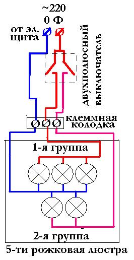 , нашла. вопрос какие провода скрутить??????? сейчас советом ДД пользоваться, что против ветра........., люстру разбирать не буду, для того, что бы посмотреть какой провод от 1-й группы и какой от 2-й, хотя, спасибо за наглядность, так действительно понятней, но показать надо было раньше, пока лыжи мазала, а не ехать пыталась. теперь поздно пить Боржом, могла и напутать, а может и было запутанно. метод научного тыка рулез, а их 10 вариантов, пля.