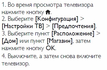 В меню выбрать "Plug&Play" и установить "Дом" (сейчас, наверняка, "Магазин").
